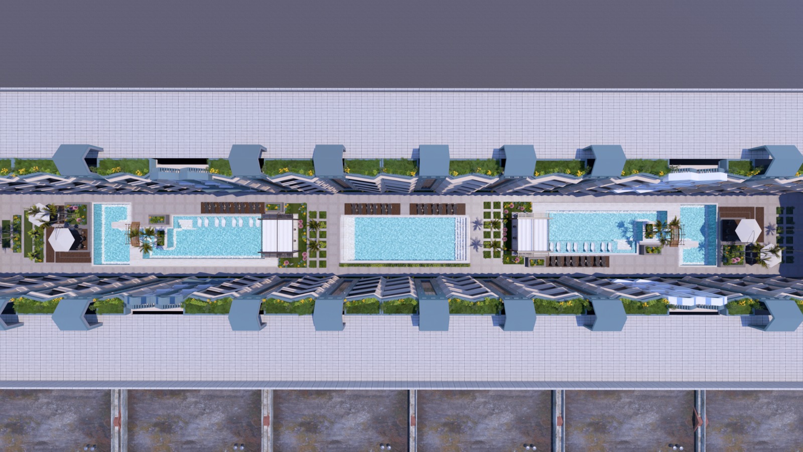 Two rooftop pools with open views